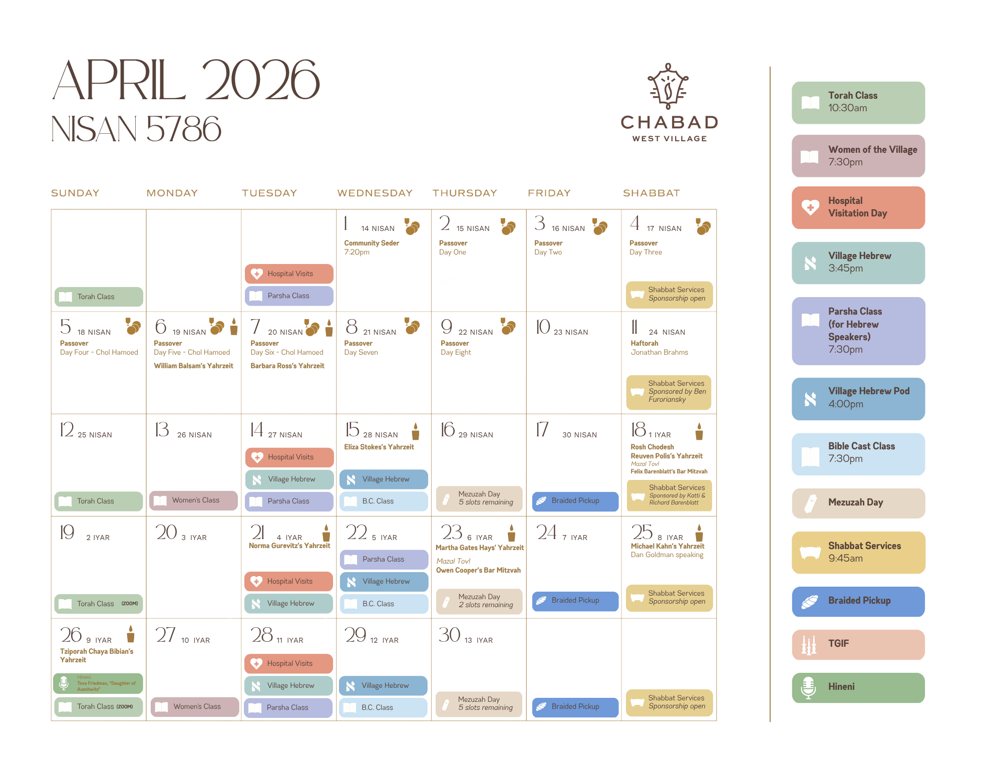 In the non-stop New York City hustle, our need for connection is often overlooked. Chabad West Village, nestled in the haven of cobblestone streets and historic charm, is dedicated to creating a sense of community and imbuing your life with the beauty and relevance of authentic Judaism. Our social, educational, soulful, and cultural activities invite all, regardless of affiliation or degree of commitment, to make lasting connections. Connection to G-d. Connection to each other. Connection to our heritage. And connection to our spiritual selves.